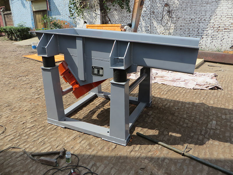 GZG系列振動(dòng)給料機(jī)是由給料槽、振動(dòng)電機(jī)和減振系統(tǒng)等組成。該系列給料機(jī)是采用振動(dòng)電機(jī)作為振動(dòng)源,固定在給料槽上的兩臺(tái)相同型號(hào)的振動(dòng)電機(jī)做相反方向自同步旋轉(zhuǎn),振動(dòng)電機(jī)所帶的偏心塊在旋轉(zhuǎn)時(shí)各個(gè)瞬間位置所產(chǎn)生的離心力之分力沿拋擲方向作往復(fù)運(yùn)動(dòng),使支承在減振器上的整個(gè)機(jī)體做直線(xiàn)振動(dòng),使物料在給料槽內(nèi)被拋起的同時(shí)向前作直線(xiàn)運(yùn)動(dòng),物料從入料端落入給料槽后,迅速前進(jìn),從而達(dá)到運(yùn)輸物料之目的。適用于貯料倉(cāng)和料斗下快速排料或連續(xù)均勻地把物料輸送到受料裝置中,它廣泛應(yīng)用于冶金粉末、化工、肥料、磨料、醫(yī)藥、糧食、陶瓷、煤炭、耐火材料、建筑材料等行業(yè)。